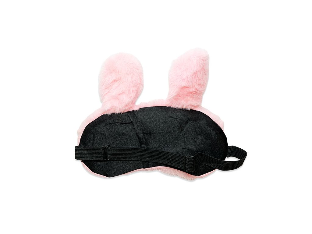 Rosa Fleece-Schlafmaske im Hasenstil. Bequem, angenehm auf dem Gesicht und schützt die Augen vor Licht. Die Maske dient auch zur Unterhaltung der Kinder.